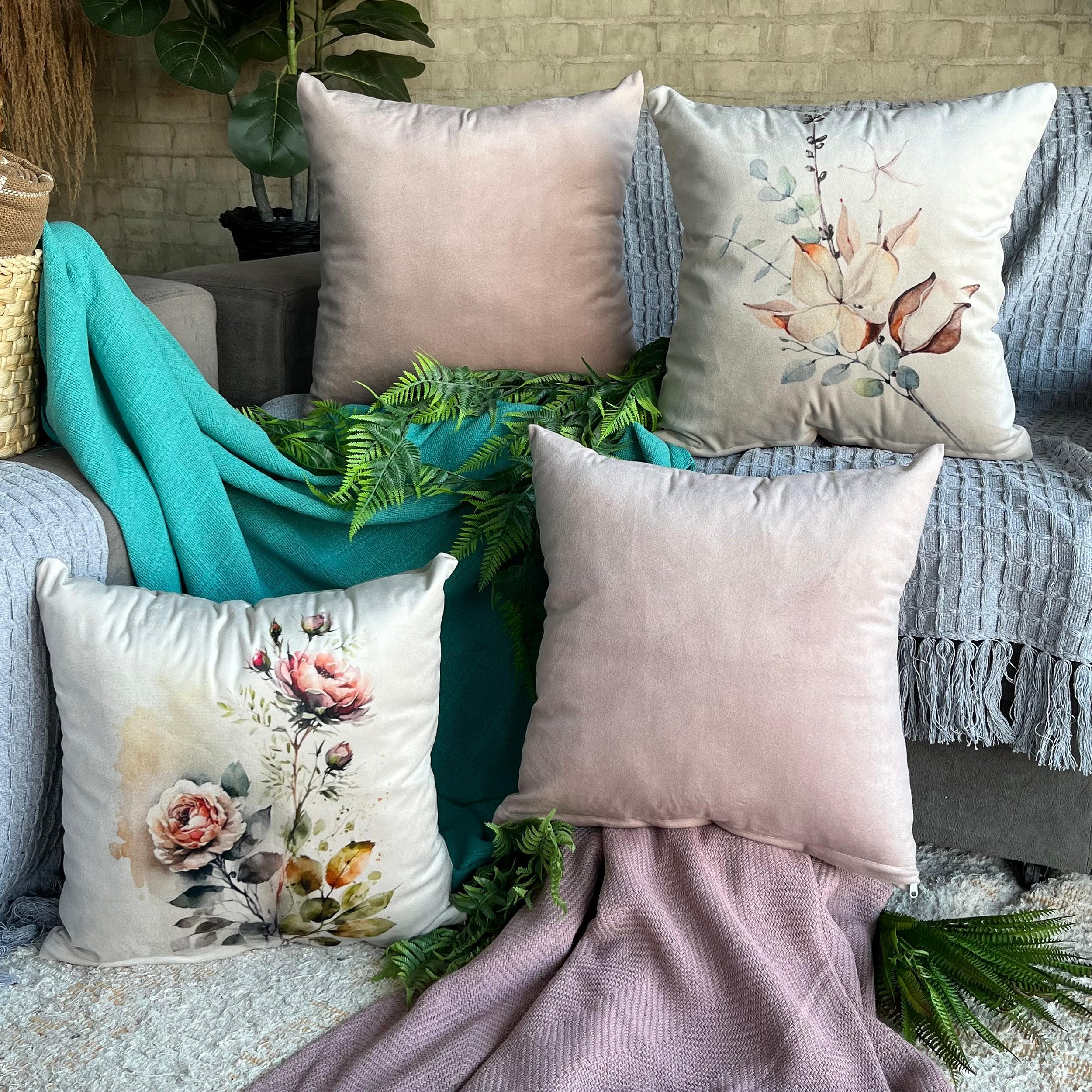 1- Capa de almofada de Veludo estampada