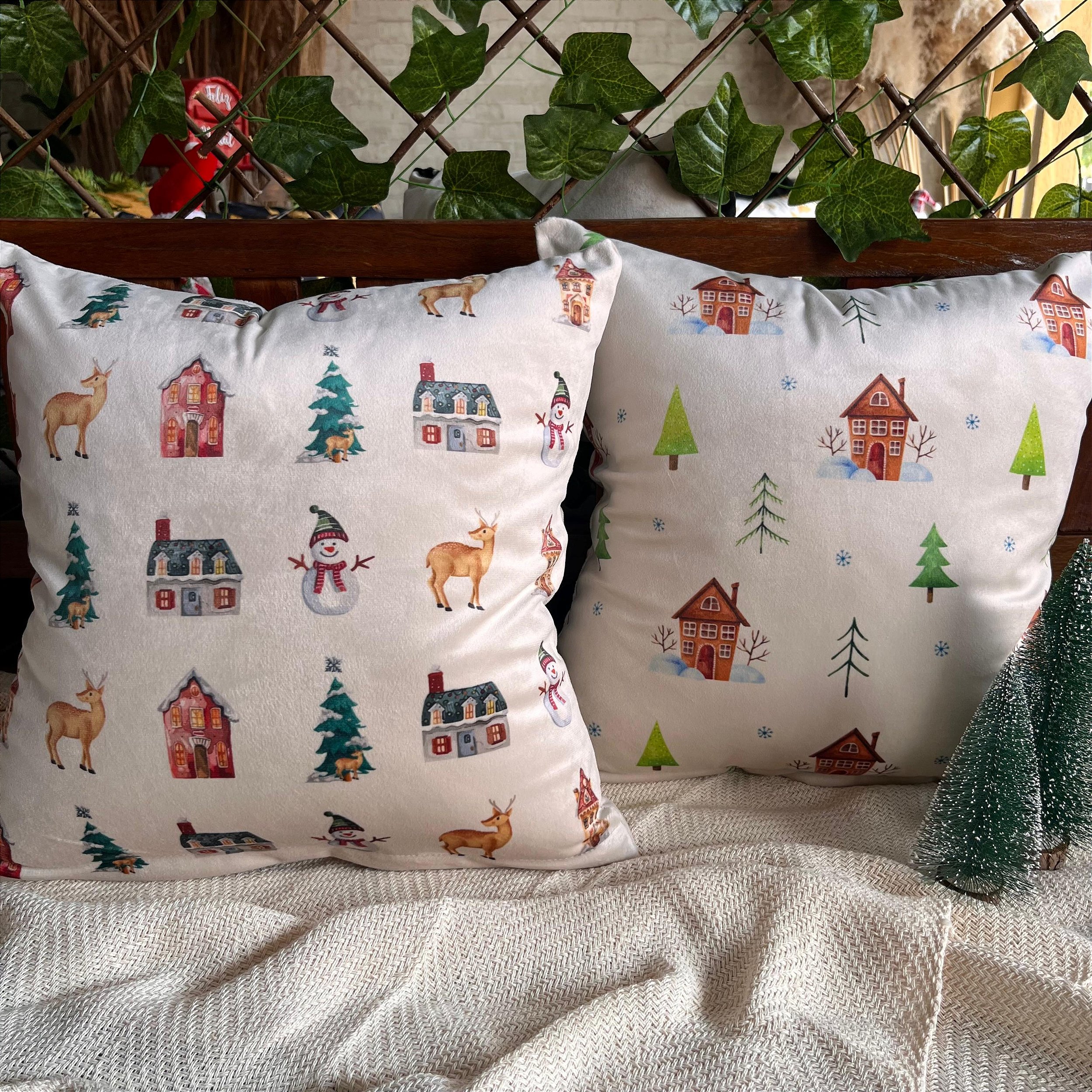 Capa para almofada "Natalina " estampada de veludo ( 45x45 ) KIT 10