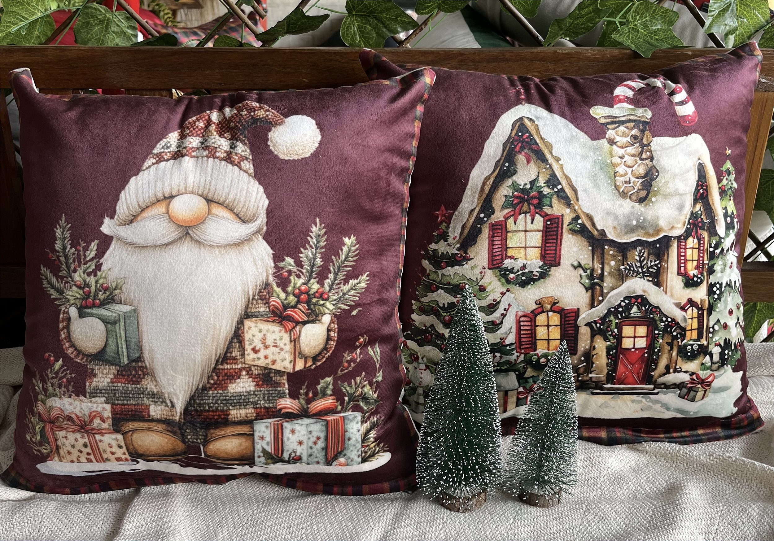 Capa para almofada "Natalina " estampada de veludo ( 45x45 ) KIT 12