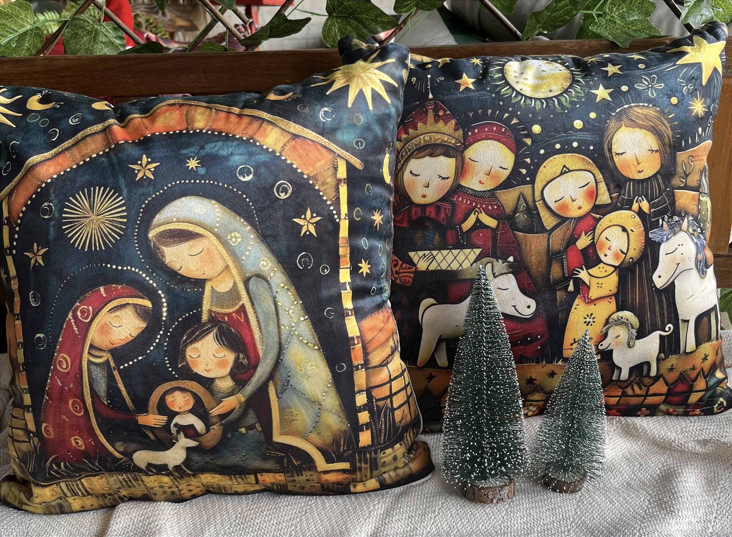 Capa para almofada "Natalina " estampada de veludo ( 45x45 ) KIT 15