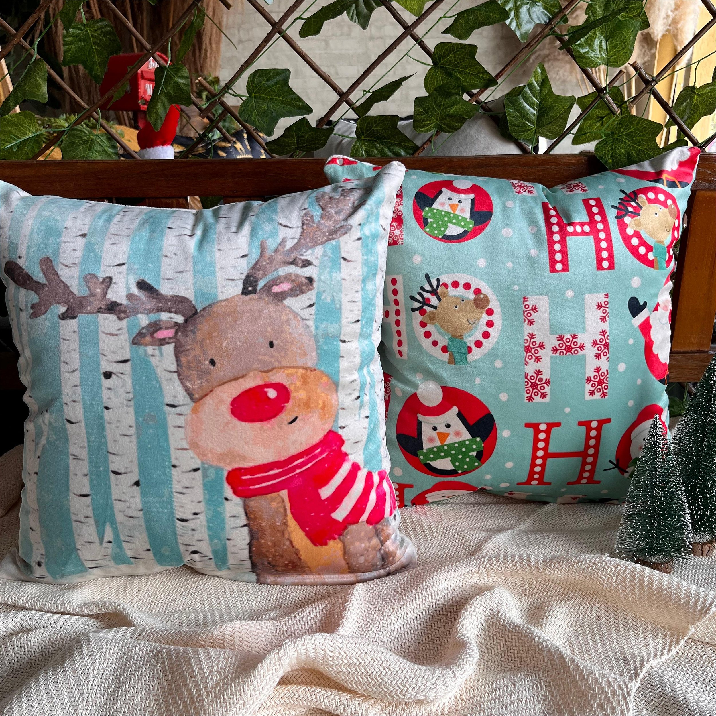 Capa para almofada "Natalina " estampada de veludo ( 45x45 ) KIT 3