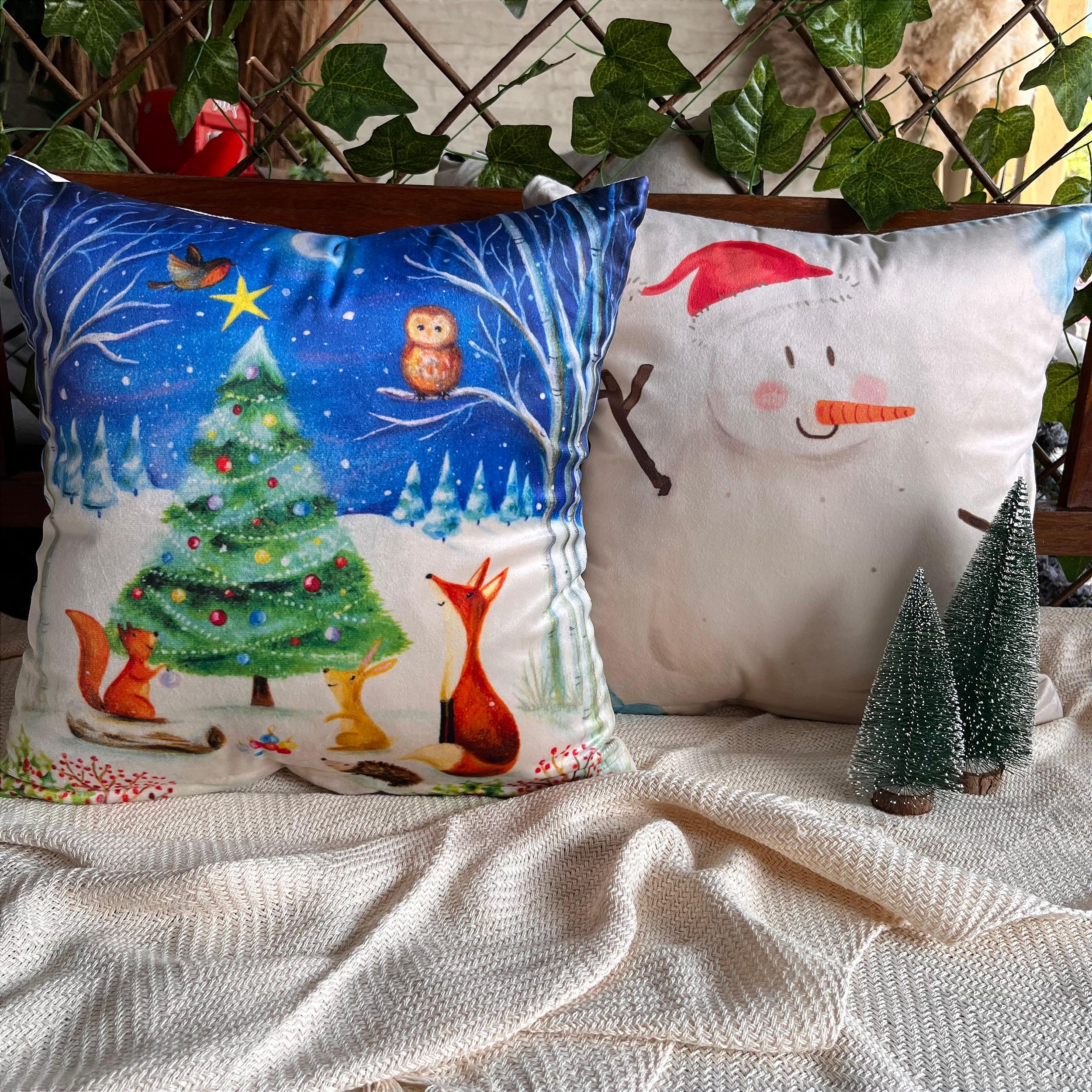 Capa para almofada "Natalina " estampada de veludo ( 45x45 ) KIT 4